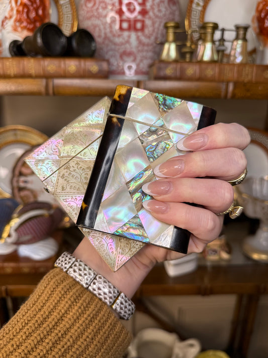 RESERVED - ANTIQUE WHITE pearl calling card case - AS/IS