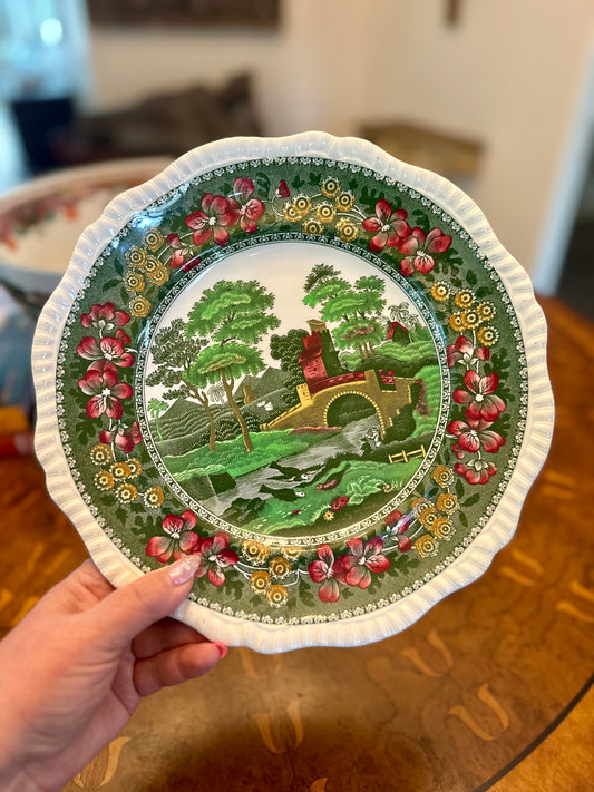 RARE Copeland Spode “Tower” Dinner Plate Green Multi-Color | Dated March 1928