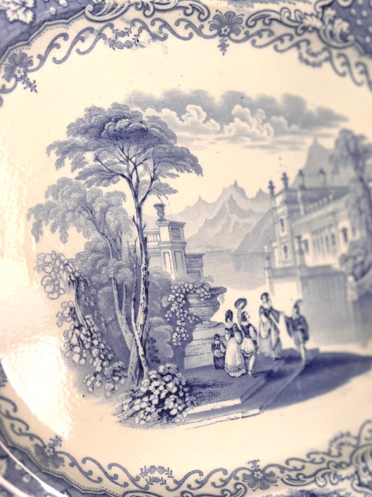 Antique Scottish Transferware Platter “Italian Lakes” by J & M P Bell, Blue & White Scenic Platter 15.25”