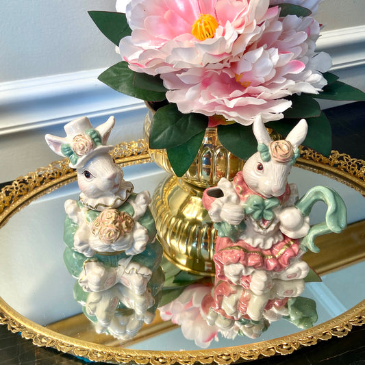 Vintage Fitz & Floyd bunny rabbit collectable salt and pepper on plate