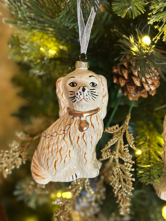 Tobacco Leaf Porcelain Mini Spaniel Figure, 3” Tall