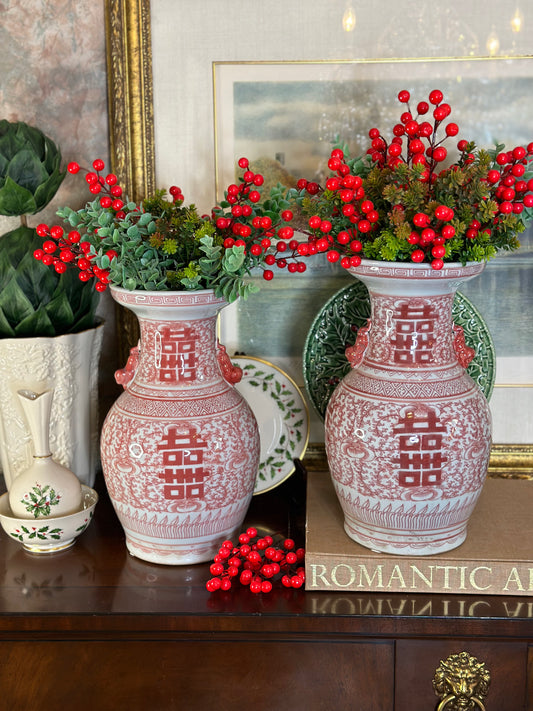 Hand painted Red/White Chinoiserie Double Happiness Vase & Ginger Jar (Sold Separate)