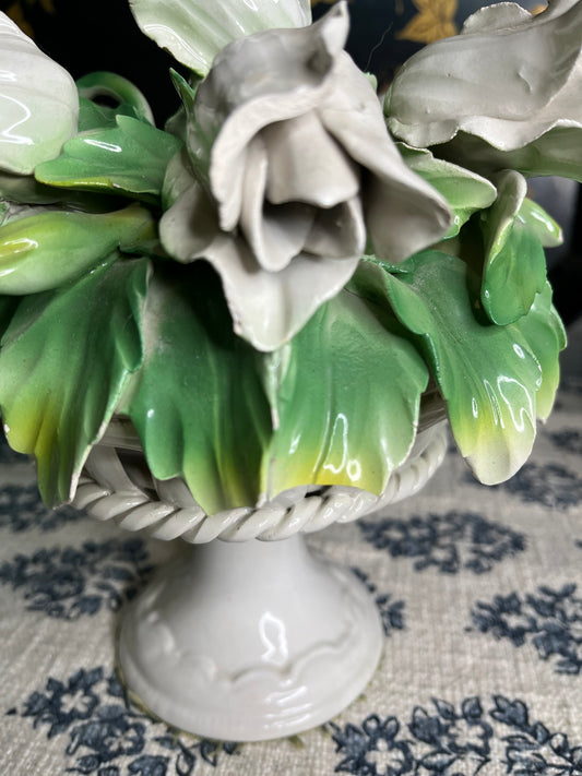 Elegant Mid Century Italian Hand Painted Goose Covered Dish – Base Greens, Rose & Gold