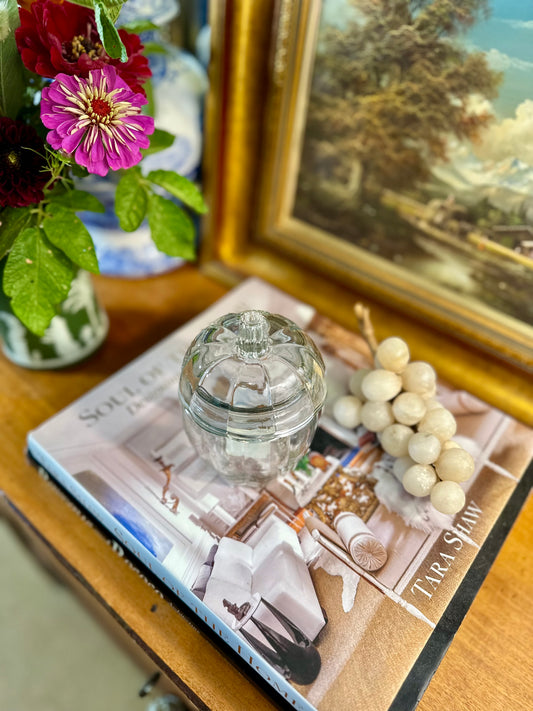 Small Clear Glass Pumpkin Candy Treat Jar w/lid, 5.5"