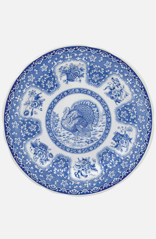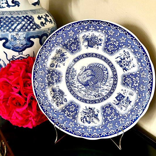 Massive brown & blue oval turkey holiday platter, 19 x 14!