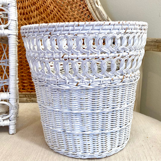Boho Chic & palm beach regency vintage rattan 2 tier wall shelf and waste basket