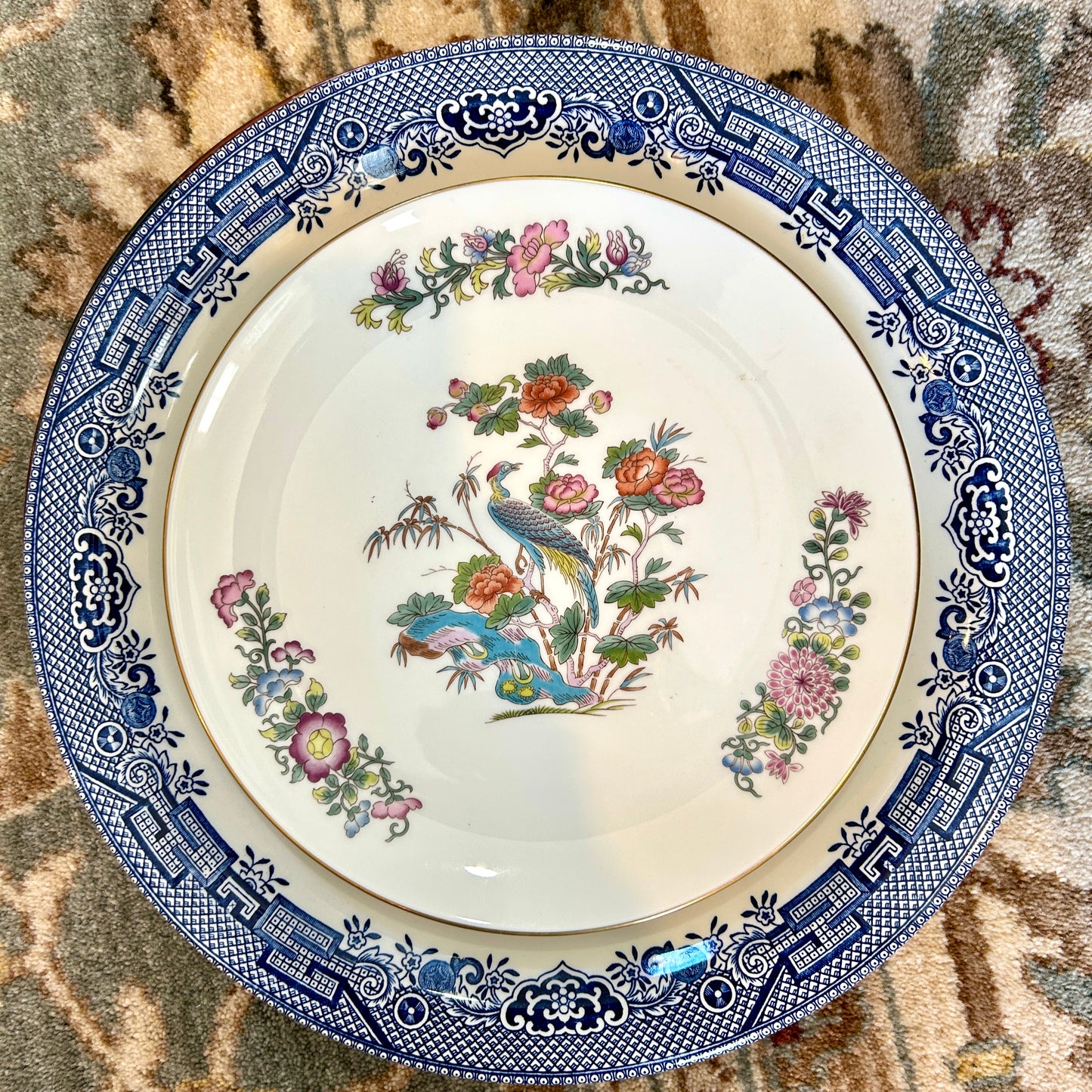 This Vintage WEDGWOOD plate features the beautiful "Kutani Crain " design and was crafted in England. With a diameter of 9 inches, it is the ideal size for displaying on a shelf or using for special occasions.