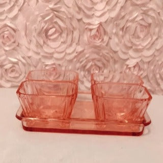 Pink Set of Cambridge Nut candy cup bowls with Tray Or Condiments holder