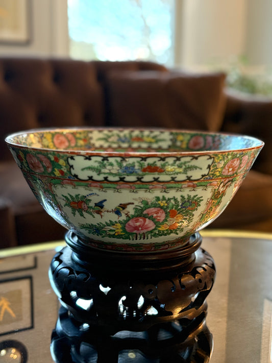 14W X 6” Tall - Hand painted FLORAL - BLUE AND WHITE CLASSIC Bowl