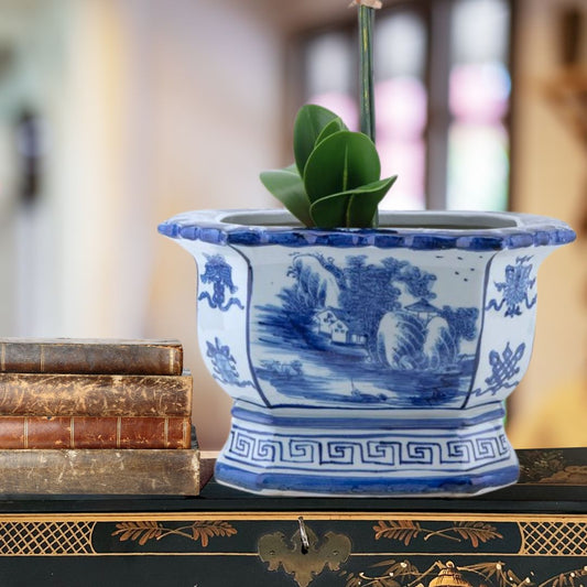14X12" BIG RECTANGULAR PLANTER- BLUE AND WHITE