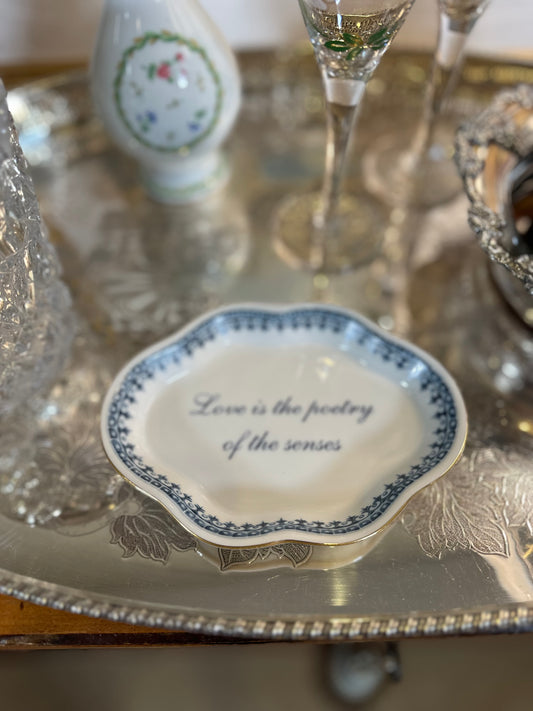 Vintage Andrea by Sadek “Love” Trinket Dish | Blue & White with Gold, 6”