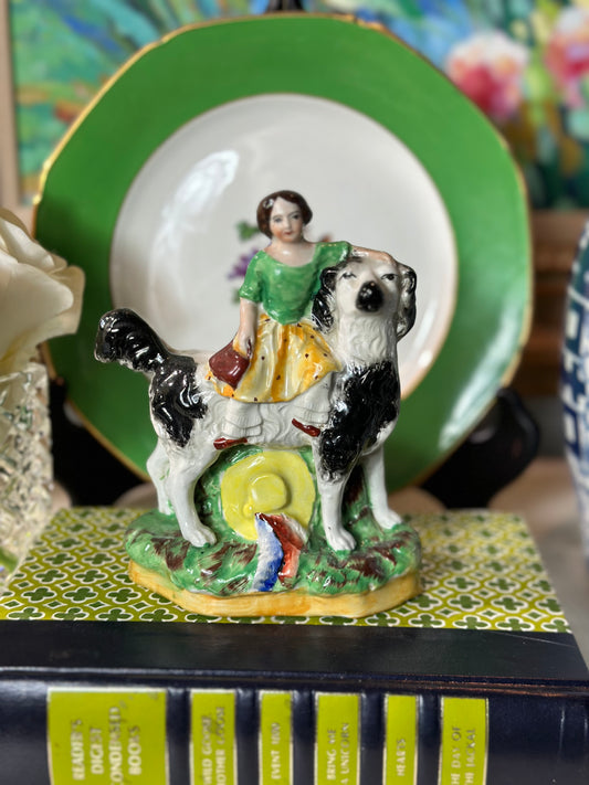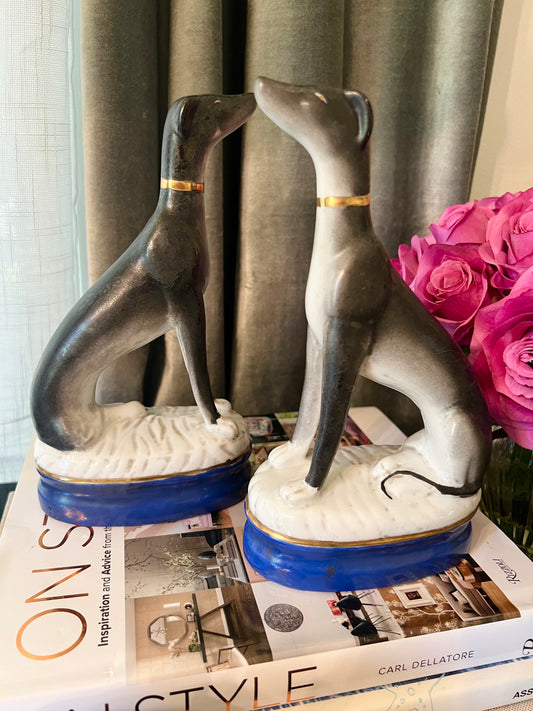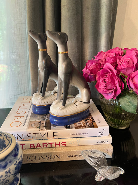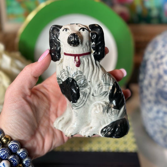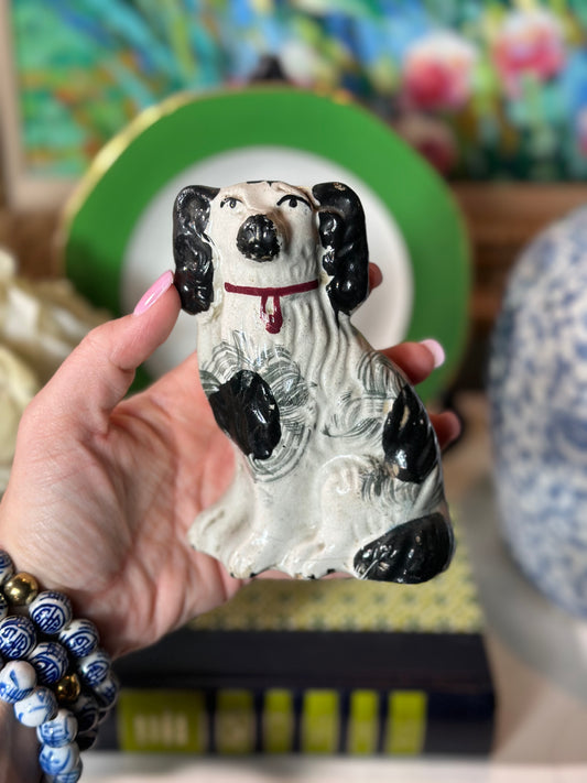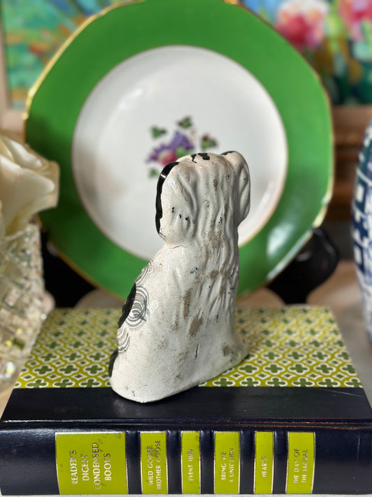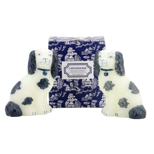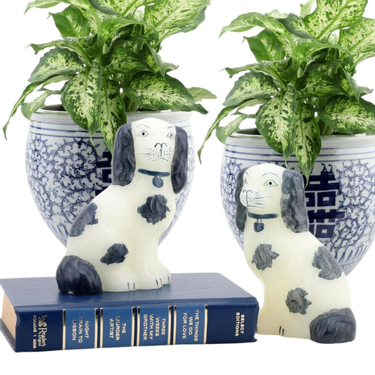 Danny’s Fine Porcelain: "Staffordshire" Spaniel Dog Candle Pair, Blue & white