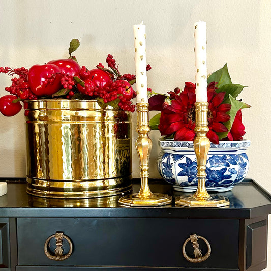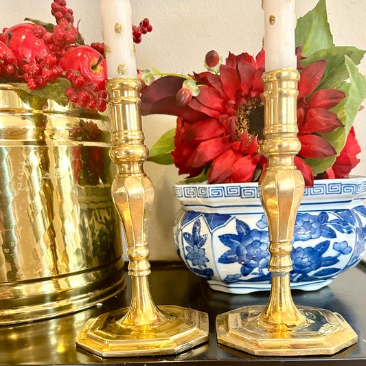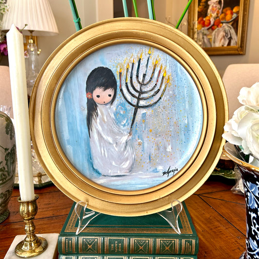 Vintage brass Menorah candle holder for Hanukkah holiday