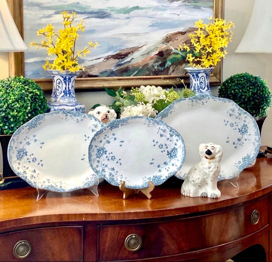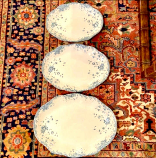 Set of 7 John Haddock blue and white Greek key older dinner and salad plates