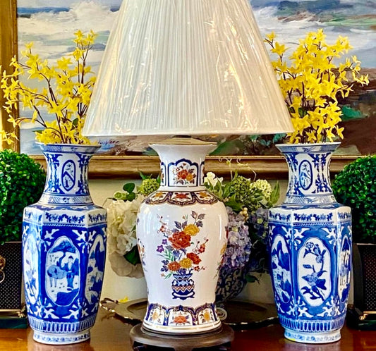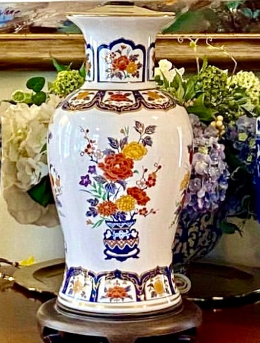 Impressive Imari blue & white chinoiserie ginger jar lamp