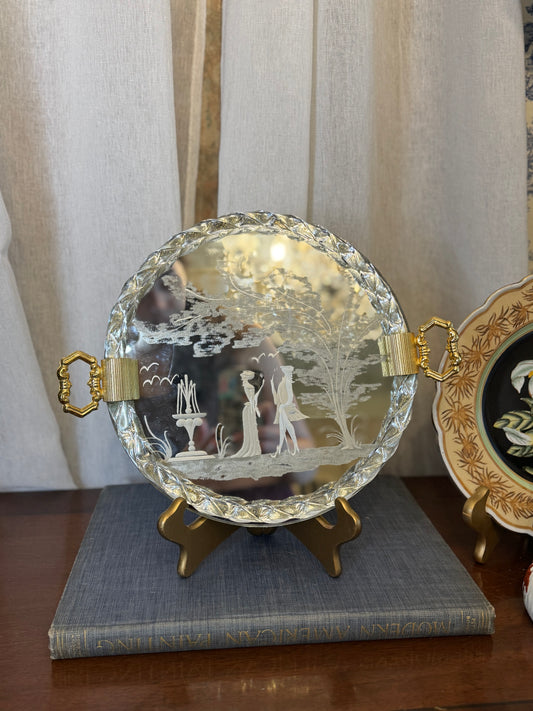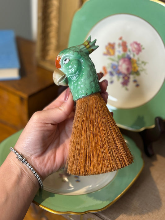 Danny’s Fine Porcelain | Blue & White Songbird Garden Tray with Bronze Handles – 15” x 8.5”