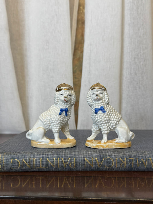 Vintage Pair of Hand-Painted Porcelain Dalmatian Dogs on Cobalt Bases (5.25”) English