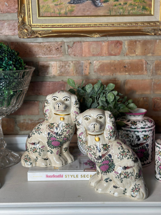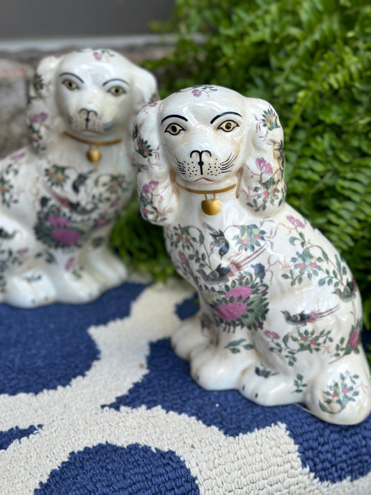 Danny's Fine Porcelain - Pink & White Floral, 6” Tall Mantle Spaniel Dog Pair