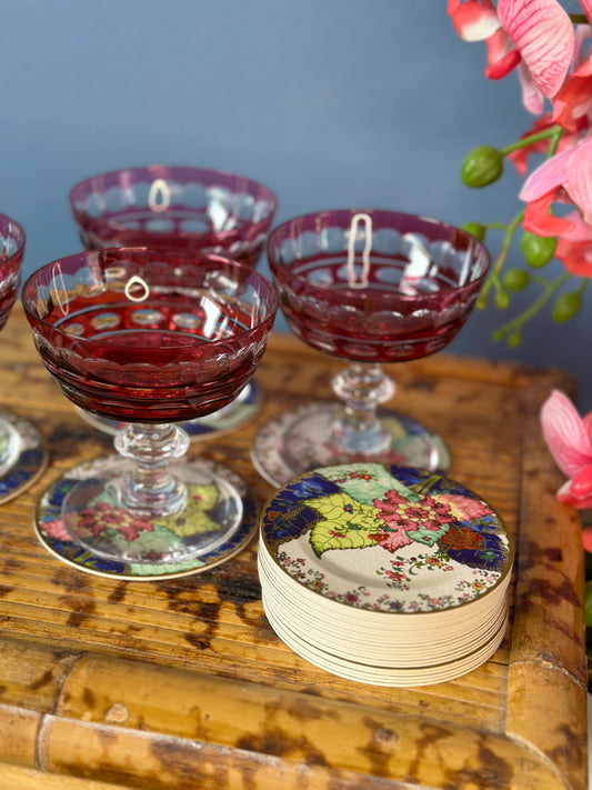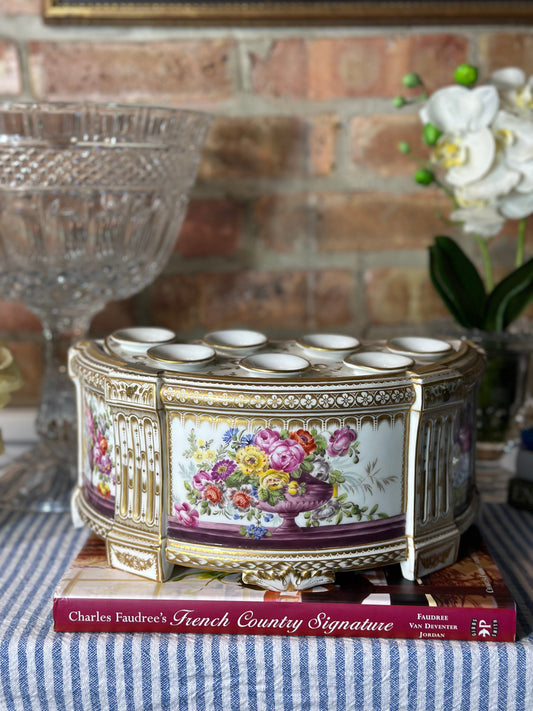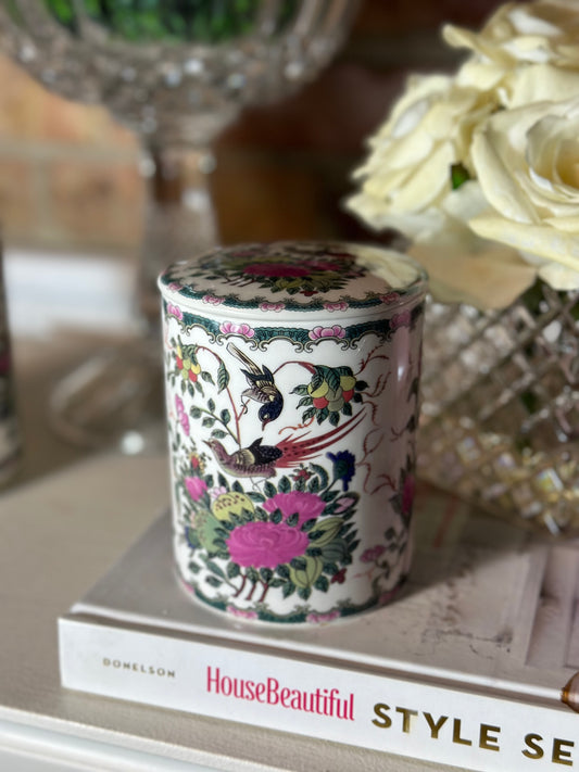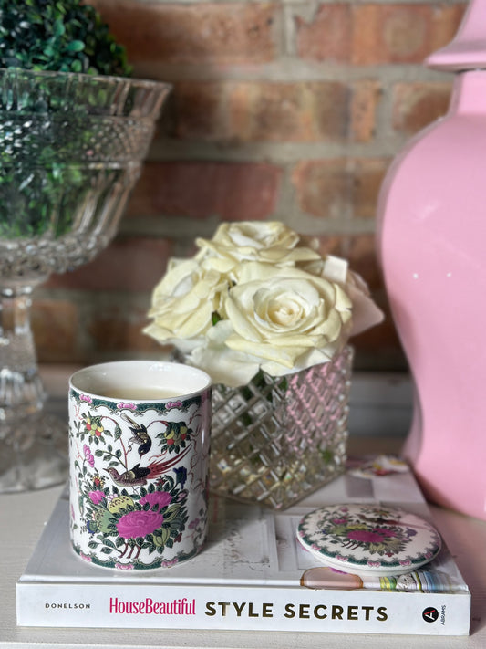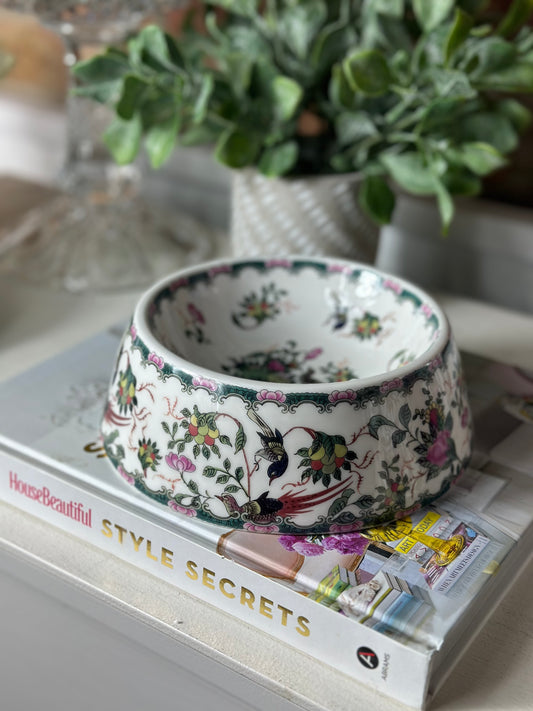 Danny's Fine Porcelain: Pink Floral Footed Basin/ Planter: Birds, Hand Painted, 9x6x7”