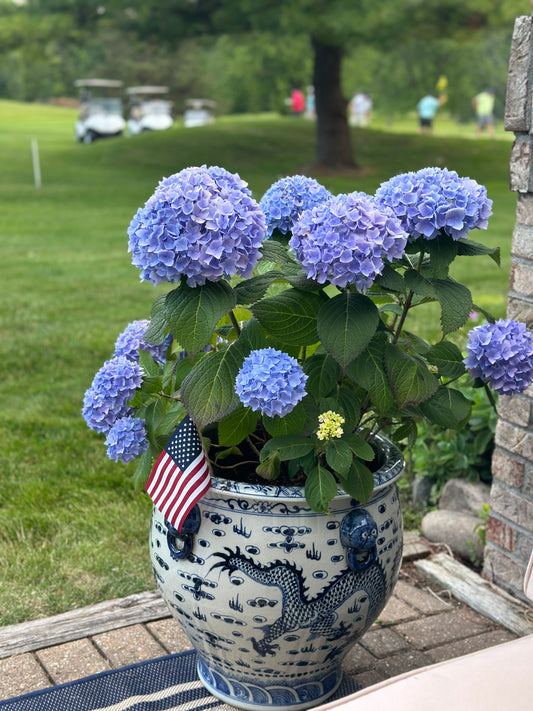 14W X 6” Tall - Hand painted FLORAL - BLUE AND WHITE CLASSIC Bowl