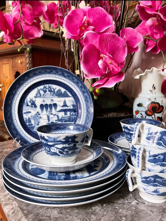 Rare Expansive Mulberry Transferware - Safe Harbour Royal Staffordshire - Service In Mint Condition