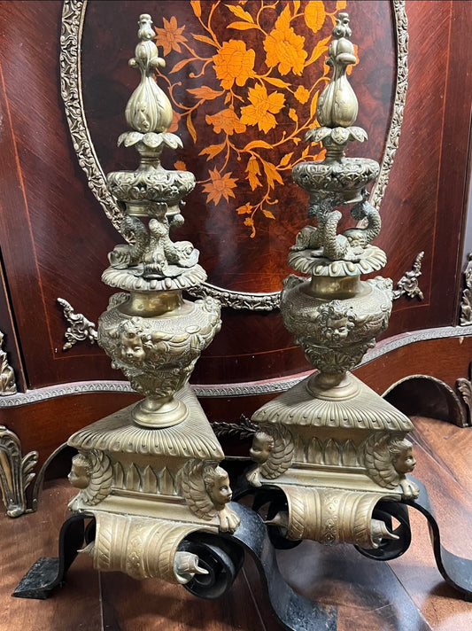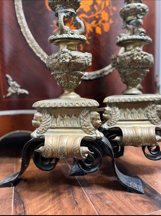 Chateau Style Gilt Cherub Candelabra - 4 Arms With Marble Plinth