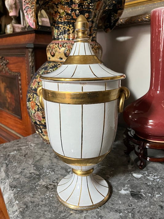 Sevres Style Chelsea House Porcelain Urns with Gilded Scroll Handles & Hand-Painted Exotic Birds — Pair
