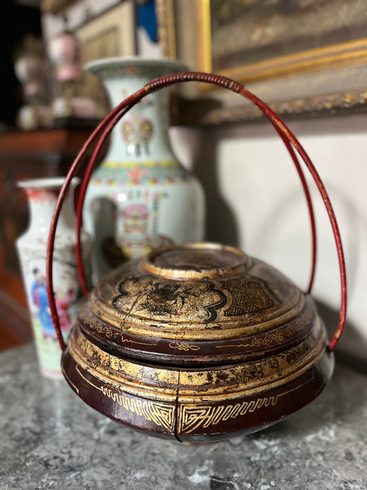 1920-1940 English X-Large Red Tole Gilded Container - John Marston