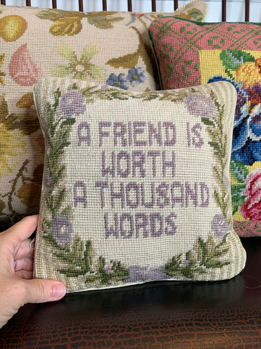 Vintage Needlepoint Pillow, Lilac- 14x14". Excellent Condition!