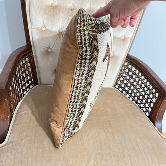 Pair of French Aubusson Hand Woven Mirror Image Rooster Pillows with Café-Latte Velvet Backs