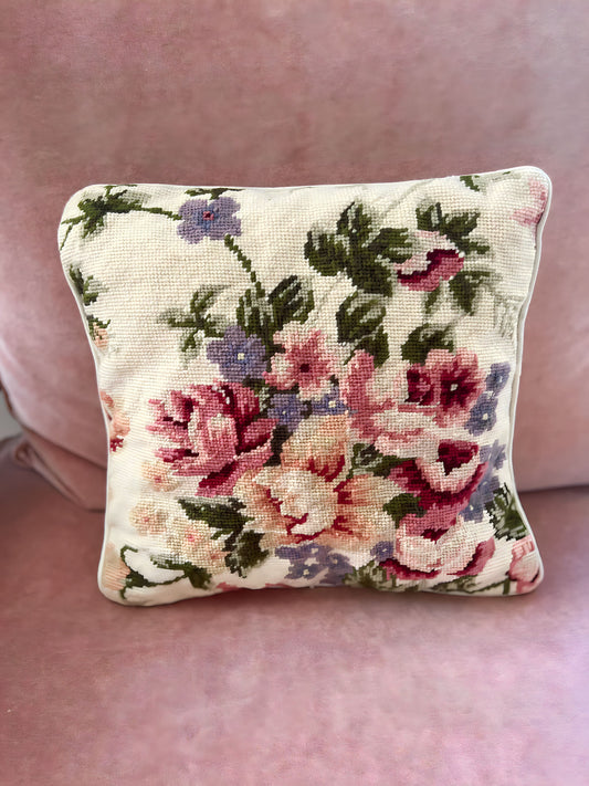 Rose Needlepoint Pillow from Designer Katha Diddel (16" x 16")