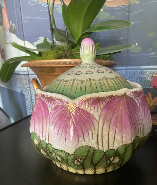 Danny’s Fine Porcelain - Tobacco Leaf Candle Pink Foo Dog Lidded Box