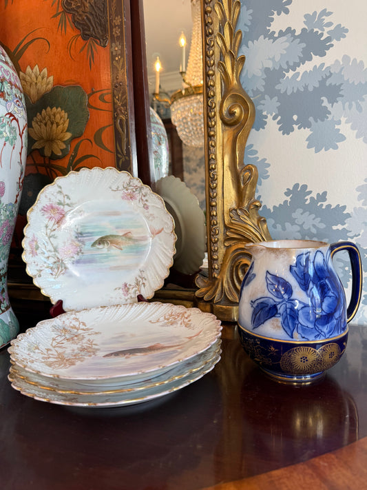Vintage Wood & Sons “Woodland” blue and white transferware pottery pitcher!