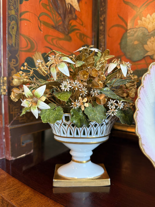 Vintage white botanical with yellow bow ceramic orchid planter