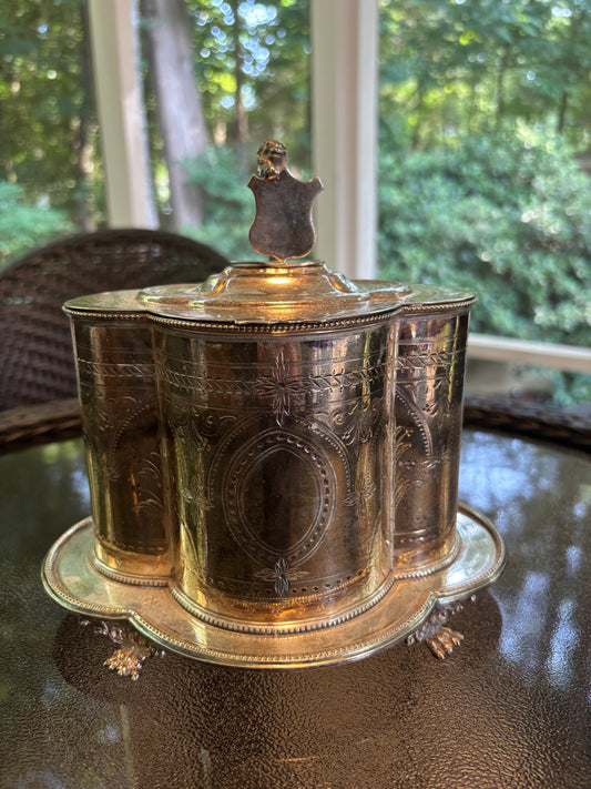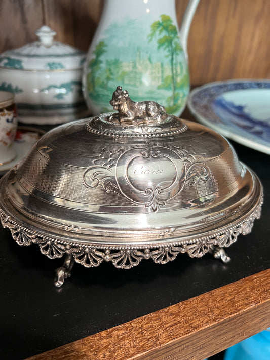vintage silver plate Lidded casserole chafing dish tripod chippendale claw feet