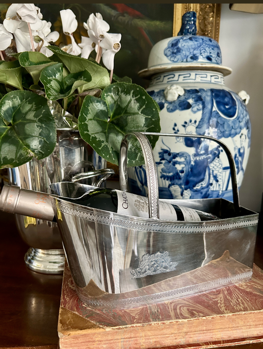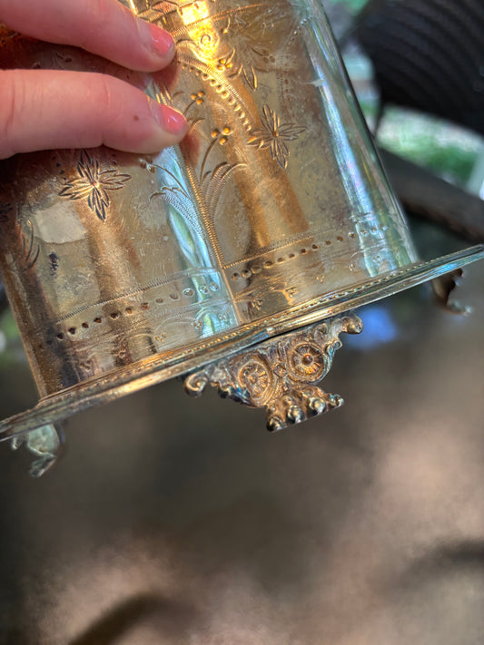 • Chic and shiny vintage silver plate reticulated galler tray platter