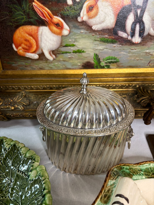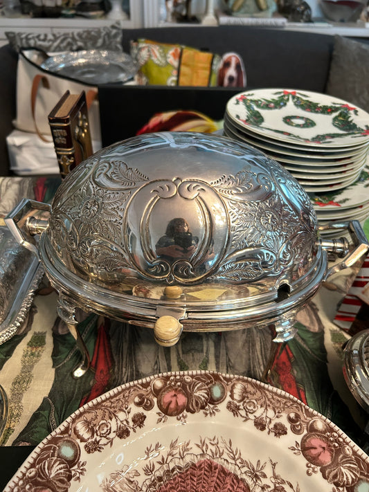 • vintage silver plate Lidded casserole chafing dish tripod chippendale claw feet