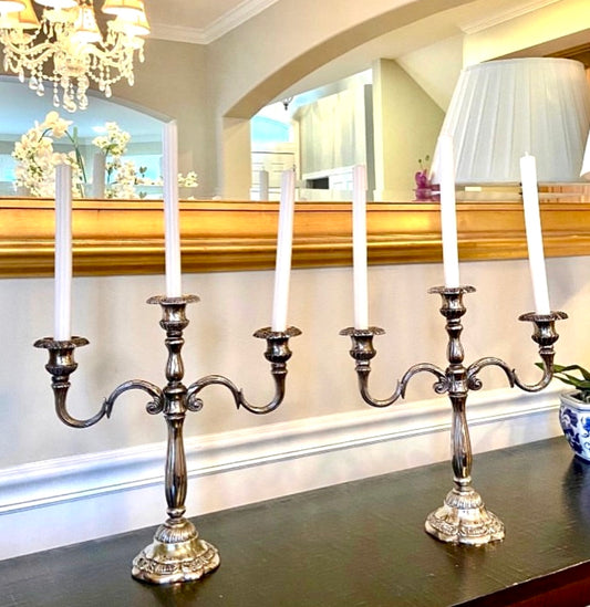 • Pair of Silver Plated Convertible 18” Candleabras