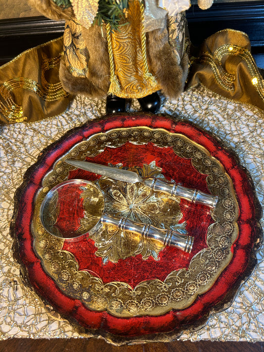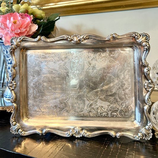 Chic and shiny vintage silver plate reticulated galler tray platter