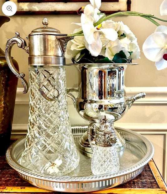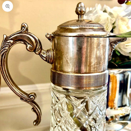 • Vintage Silver-Plate & Cut Crystal Claret Jug (Mid-20th Century), 14"