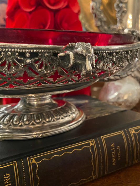 Chic vintage silver plate Hollywood regency clam shell footed candy or trinket dish .