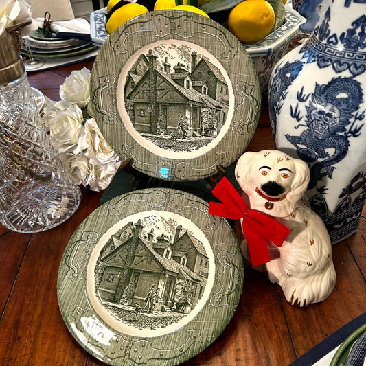 Set of 4 older Cobalt blue and white Blue Willow large dinner plates