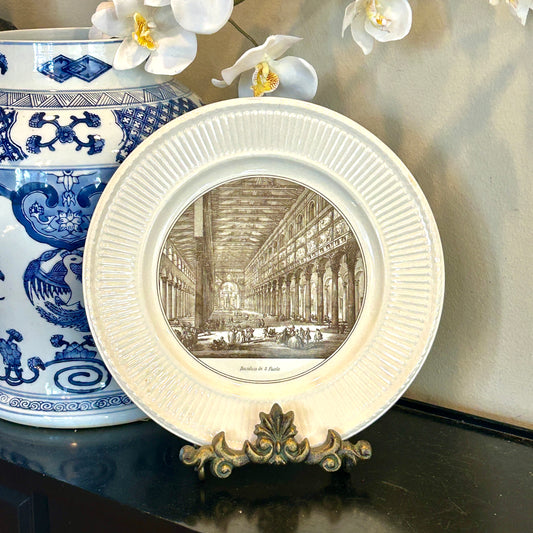 Danny's Fine Porcelain - Blue & White Pagoda Willow, Bronze Footed Trinket/Soap Dish, 8x4.5"