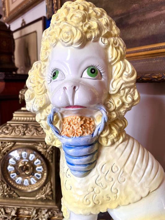 Fantastic Large Italian Hand Painted Poodle On Pillow