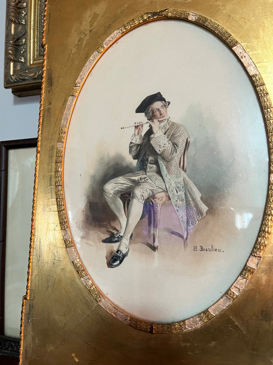 Historic French 1850’s Original Painting Watercolor Signed H. Beaulieu In Original Frame