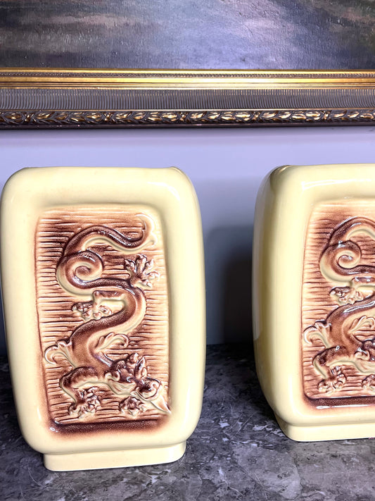 Iconic Rare Pair Of MCM Napco Signed Large Dragon Planters