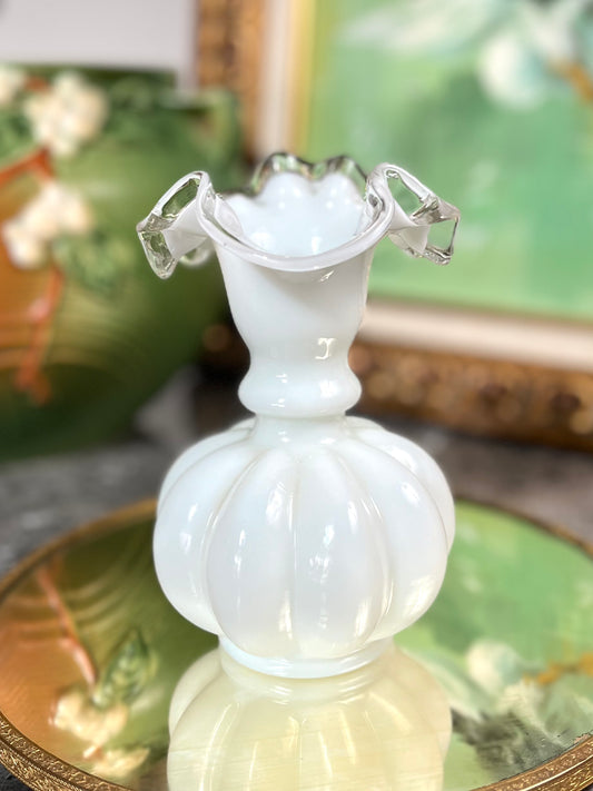 Beautiful Vintage Collectible Fenton Ivory Milk Glass Crimped Pitcher