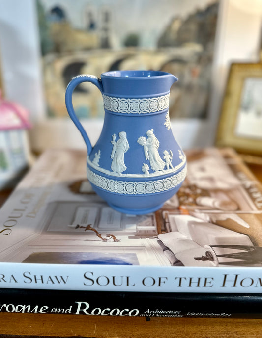 PRISTINE Wedgwood Blue Jasperware Etruscan Jug, circa 1967, 5.5”