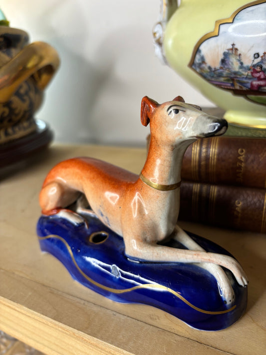 Beautiful Antique Staffordshire Greyhound inkwell/quill holder!