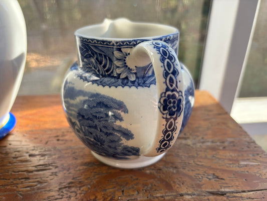 Vintage Wood & Sons “Woodland” blue and white transferware pottery pitcher!